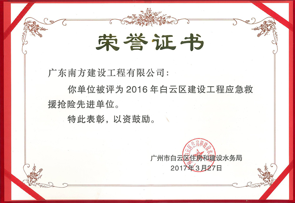 • 白云區(qū)建設(shè)工程應(yīng)急搶援搶險(xiǎn)先進(jìn)單位